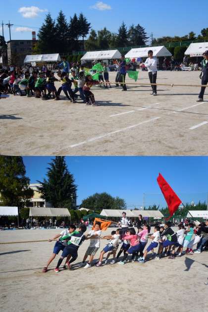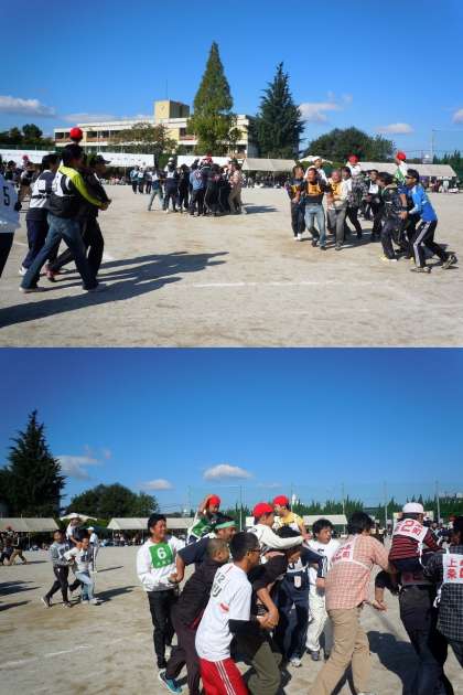 上条学区運動会 公開日 2013/10/28 更新日 2013/10/28 トピックス 27日快晴の日曜日、上条学区の運動会が開かれました。それぞれの地区や町内からたくさんの方が参加されました。 上条小学校の子どもたちも、親子でいろいろな競技に参加され楽しい汗を流していました。 親子騎馬戦・綱引き・地区対抗リレーの様子です。