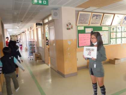 廊下は歩こう運動 公開日 2013/10/31 更新日 2013/10/31 トピックス 児童会のよびかけで、廊下を走らず歩こうという運動をやっています。この運動のいいところは、ボランティアをつのってやる気のある子が自主的にやっていることです。 長い放課の終わりの時間には、校舎のあちことにボランティアスタッフが立って「廊下は右側を静かに歩こう」とよびかけていることです。