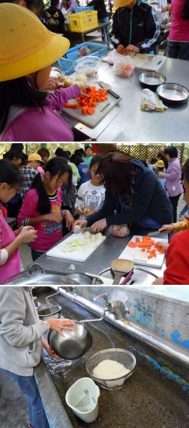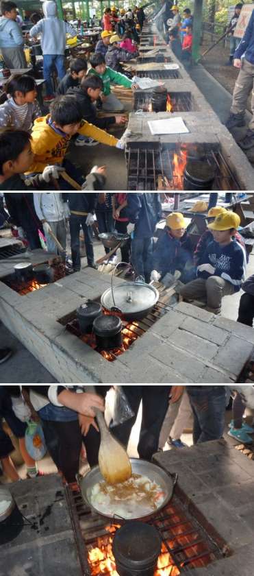 野外学習2日目 2 公開日 2013/11/06 更新日 2013/11/06 学校行事1 カレー作りの様子です。野菜の切り方などお母さん方がきめ細かく見てくれました。 かまどの火もむだなく、飯ごうや鍋を加熱してくれました。