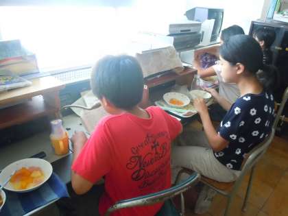 放送委員会の子どもたちは、お昼の給食時間帯に放送をするのがメインの仕事です。曜日ごとに当番が決まっていて、その日は放送室で給食を食べます。