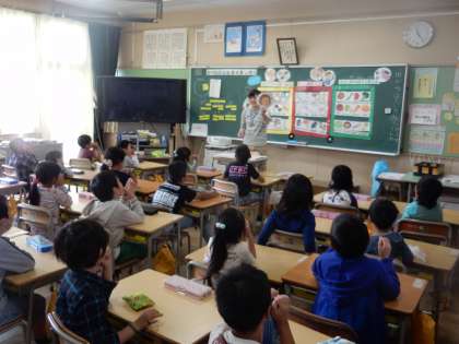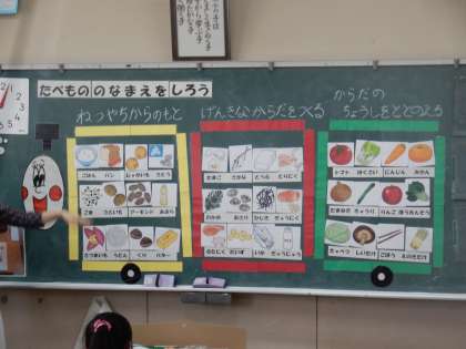 本日、栄養士訪問による栄養指導が行われました。今回はどの食べ物がどんな働きをするかについて説明をしてくれました。野菜やお肉、ご飯、パンなどたくさんの食べ物をバランスよく食べることで、健康な体を作るということを学ぶことができました。今回の学習を生かして、今後も学校で、栄養指導に取り組んでいきたいと思います。