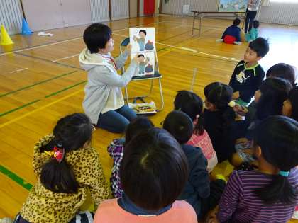 読み聞かせ 公開日 2016/11/17 更新日 2016/11/17 PTA活動 体育館で読み聞かせをしていただきました。 にじいろぽけっつの方が、体育館の中で十数カ所に分かれて、それぞれちがった本を読んでくださいます。 子供たちも数人ずつ分かれて、本当に家庭で読んでもらうような雰囲気でした。