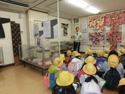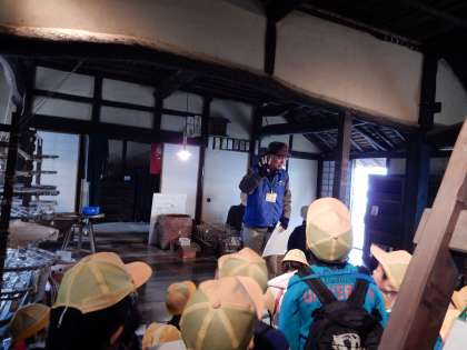 本日、1〜4限に中央公民館へ校外学習に行きました。約150年前の四つ立て民家の中を見て回ったり、昭和時代の道具や企画展「こどもときもの」を見学したりしました。