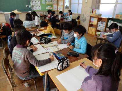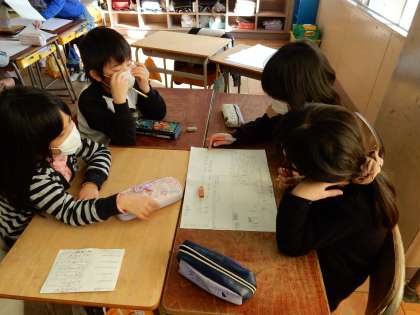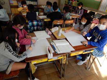 3年生では今、学習発表会の準備をしています。好きな教科を一つ選び、それについて発表します。子どもたちは、お家の人に見てもらうこともあり、気合い十分です。