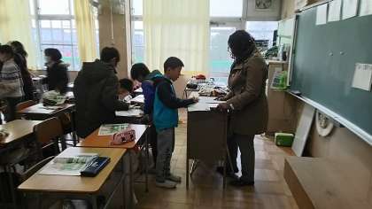 5年生 外国語活動 公開日 2017/01/27 更新日 2017/01/27 トピックス 本日、5年生の各クラスでALTの先生による外国語活動が行われました。今日は教科の言い方を学び、「自分は何を勉強しているか」を英語で話すことができるようになりました。また、積極的に英語でコミュニケーションを図ろうとする様子が見られました。今後も英語に親しみを持って、外国語活動の授業に取り組むことができたらいいと思います。
