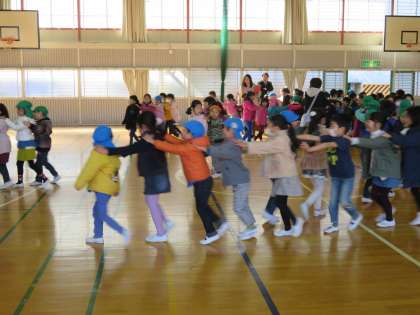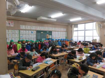 2月15日(水)、来年度入学予定の園児のみなさんが、小学校を見学に来ました。体育館で、1年生と一緒にゲームやクイズを楽しんだ後、授業の様子を見学しました。神妙な面もちでしたが、4月の自分に思いを馳せていました。