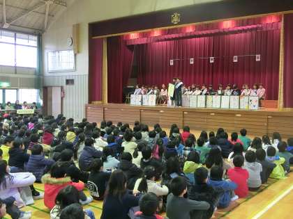 立ち会い演説会 公開日 2017/02/20 更新日 2017/02/20 児童会活動 2月17日(金)の6時間目に、立ち会い演説会がありました。児童会役員の立候補者と推薦責任者が自己紹介や抱負、推薦理由などを2分以内で演説しました。各立候補者の、学校をよりよくしていこうという気持ちがよく伝わってくる演説会になりました。