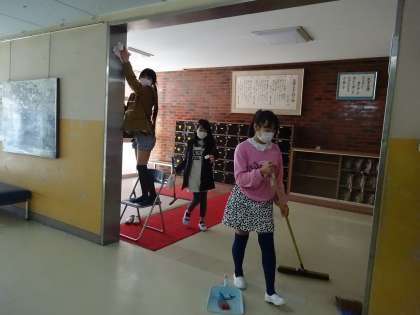 トイレや特別教室、体育館、倉庫などを、一人一人が、6年間の感謝の気持ちをこめて、丁寧に掃除をしました。