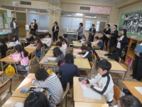 家庭科「ひと針に心をこめて」の学習でナップサックを作ります。今日から制作を始めました。いろいろなデザインがあり、完成が楽しみです。