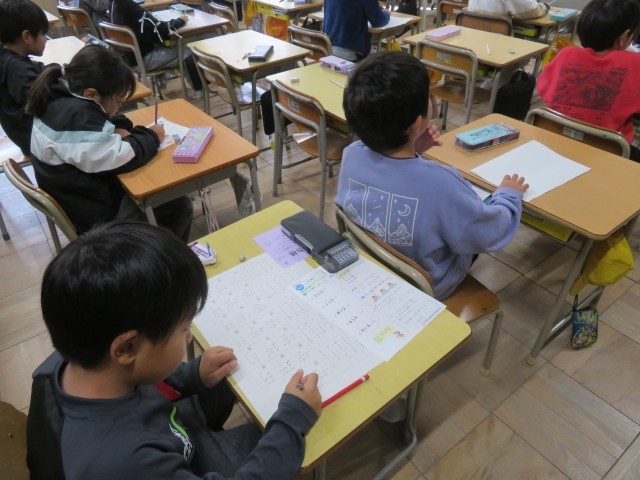 計算ドリルやプリントで、繰り返し学習に取り組んでいます。