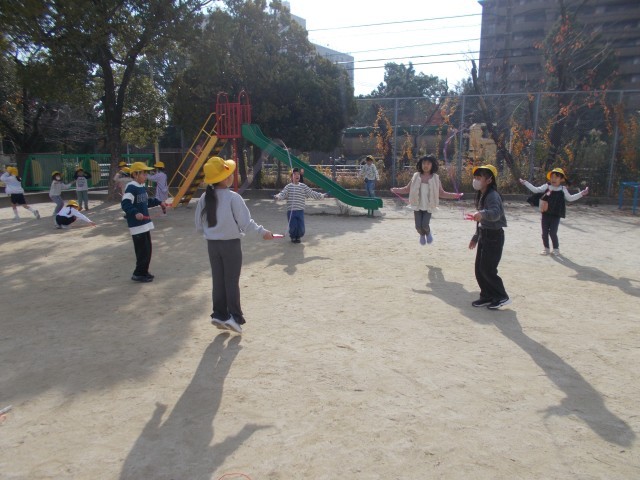 かけ足跳び、あや跳び、二十跳び等…友達と見せ合って練習していました。