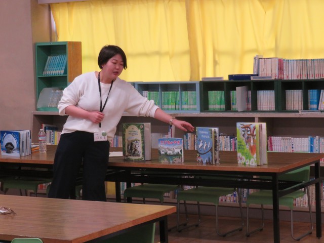 低中高学年の読み聞かせに向いている本、昔話、本の選び方、手遊び歌等、さまざま教えていただきました。
