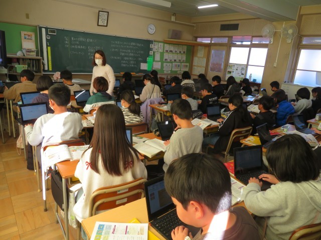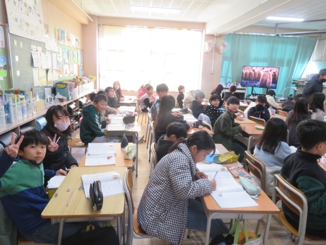 1・2組の様子です。2組はちょうどチャイムが鳴り、授業が終わったところでした。