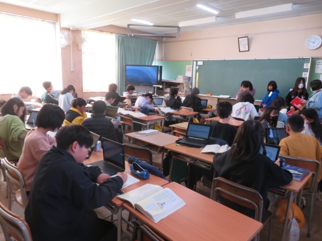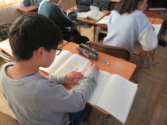 1組は国語で、文章を書いていました。