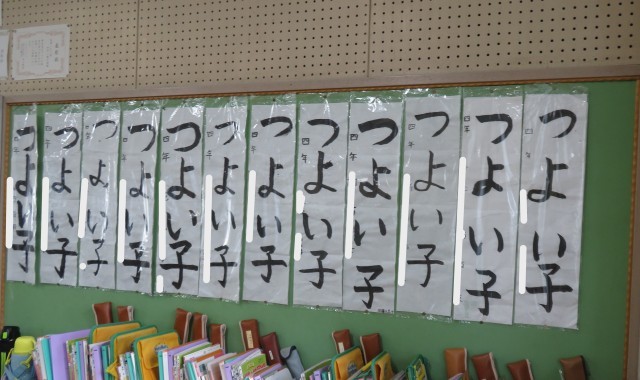 教室には書初めの作品が掲示してありました。