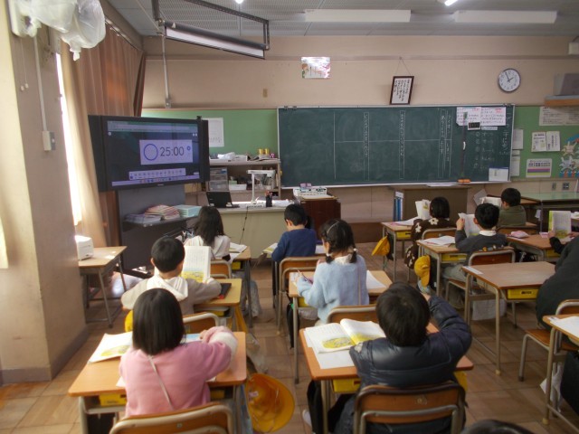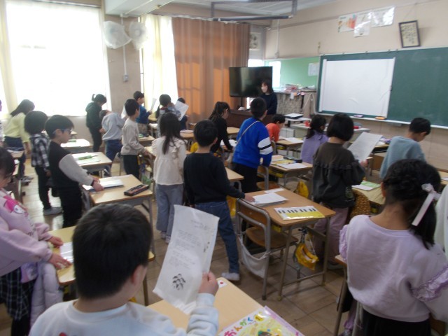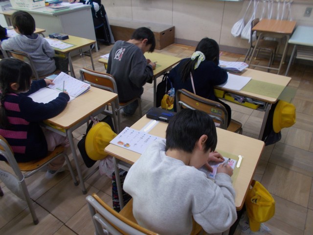 2組は国語で、読み取ったことをプリントにまとめていました。