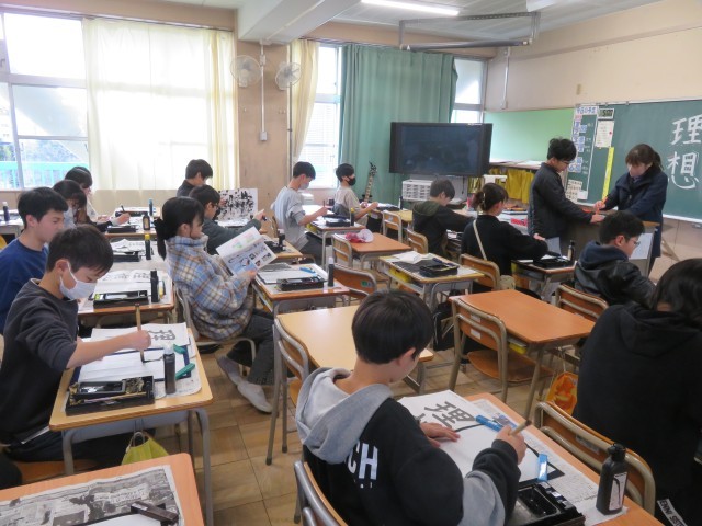 1組は算数、2組は理科、3組は書の授業を行っていました。
