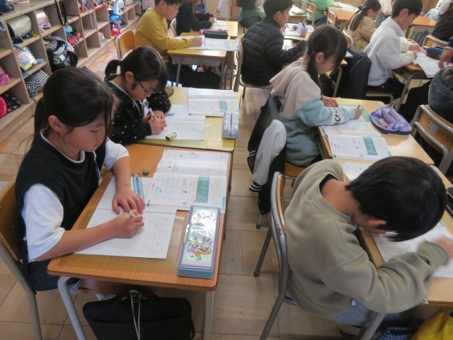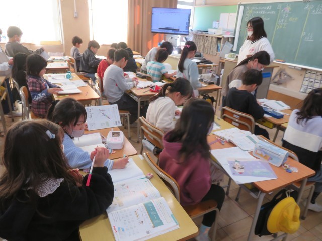 1・2組は算数の授業を行っていました。