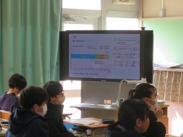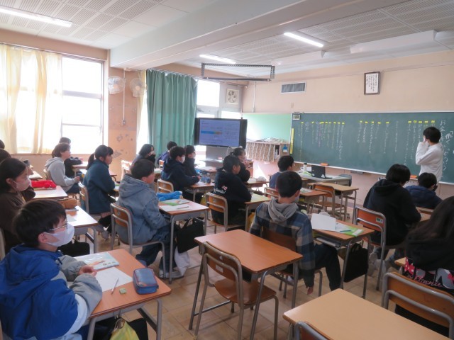 1組は外国語、2組は道徳、3組は理科の授業を行っていました。