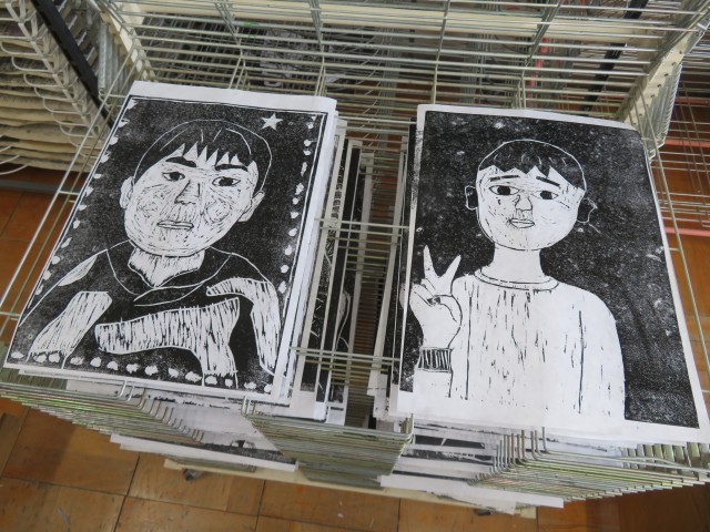 3組は図工で、版画に取り組んでいました。