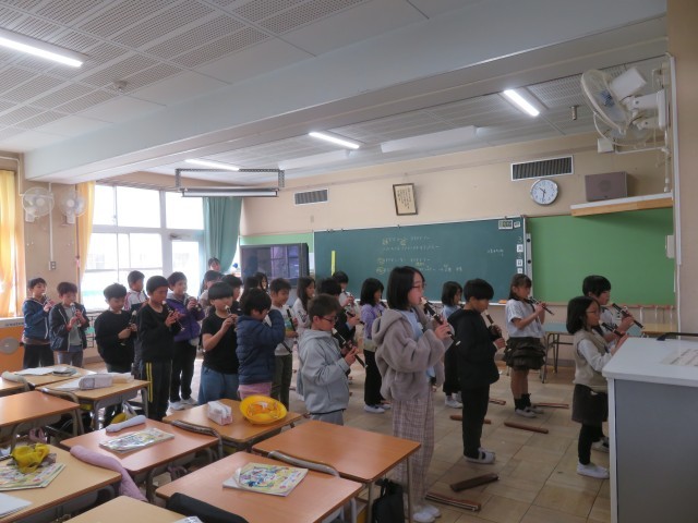 2組は外国語、3組は音楽の授業中でした。3組は卒業生を送る会の練習をしていました。