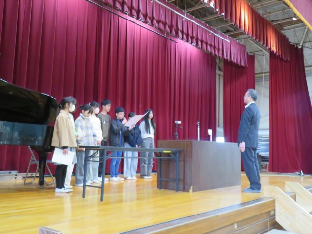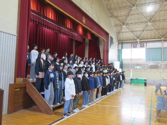 最後の確認のために、5・6年生で卒業式の練習を行いました。