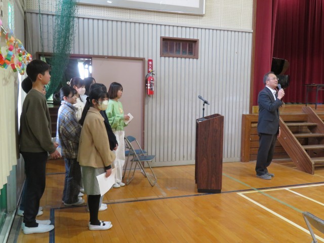 その後、サプライズで6年生から校長先生へ贈り物がありました。