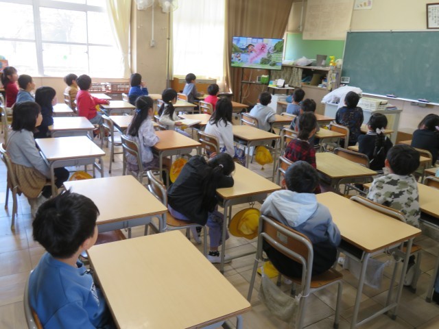 修了式の後、担任の先生からあゆみをもらったり、教室で過ごしたりしました。