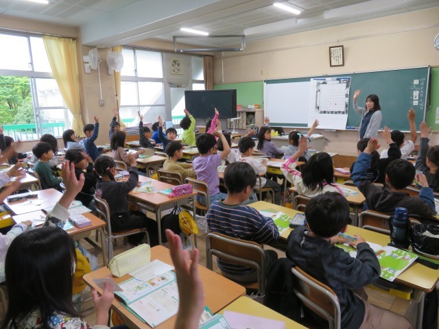 1組は算数、2組は図工、3組は理科の授業に取り組んでいました。