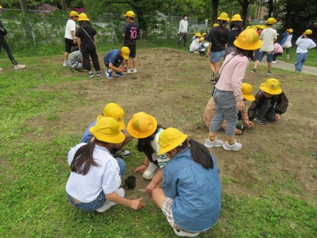 4年生の授業の様子です。1・3組は理科でヘチマの種植えに取り組んでいました。