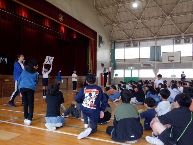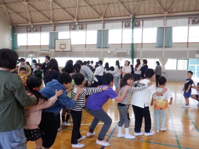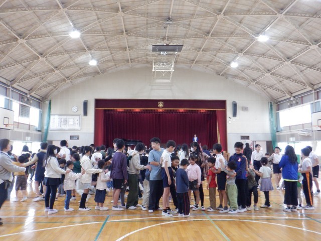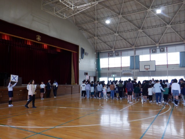 1年生が6年生とペアになって、○✕クイズやじゃんけん列車をやり、楽しい時間を過ごしました。