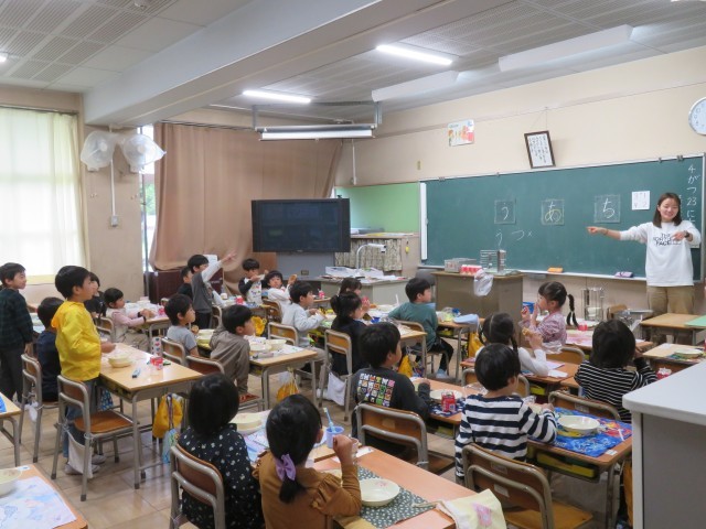 1年生の教室で、おかわりじゃんけんが行われていました。