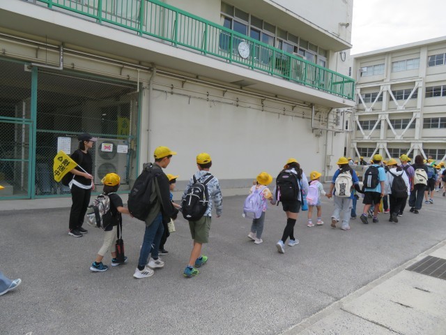6年生が1年生と手を繋いだり、優しく声をかけたりしながら出発しました!