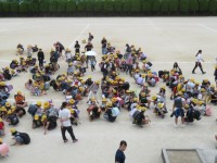 今日は、学年ごとに十字を作って、移動する練習をしています。