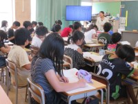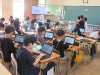 1組は国語の授業で、どうして「やまなし」という題名なのかを考えていました。2組は...