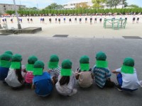 第1保育園の年長さんが、1・2年生の運動会練習を見学しに来ました。最初はじっと見...