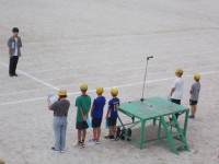 運動場で器具を出す練習や放送の練習をしたり、体育館でいすを雑巾で拭いたりしていま...
