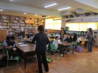 3組と2組は国語で「じどう車くらべ」「じどう車ずかんをつくろう」に取り組んでいました。1組は大縄大会についての話をしていました。廊下には虫の観察カードが掲示してありました。
