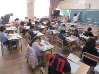 1・3組は算数の授業中でした。1組は、自分で解いてから、お隣の席の友だちと一緒に確認をしていました。3組は、どうしてその答えになるかを確認しながら答え合わせをしていました。2組は体育館で、ドッヂボール...
