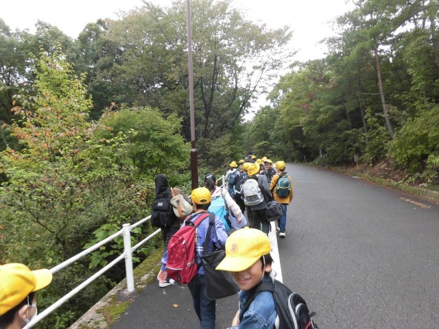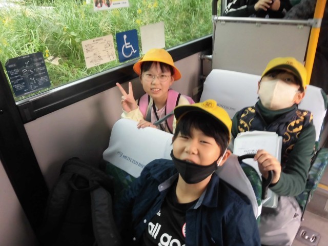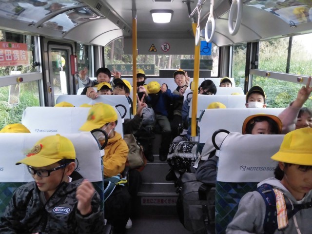 出発式を学校でおこなってから、名鉄バスに乗り、春日井市少年自然の家まで行きました。