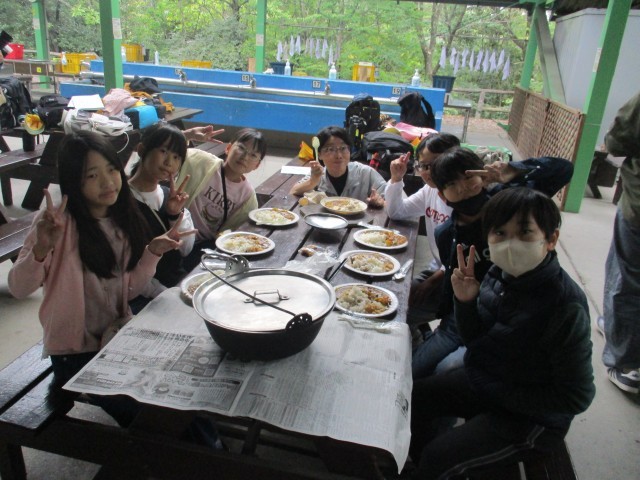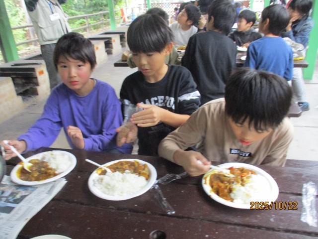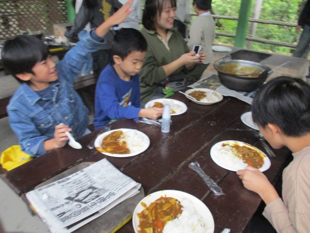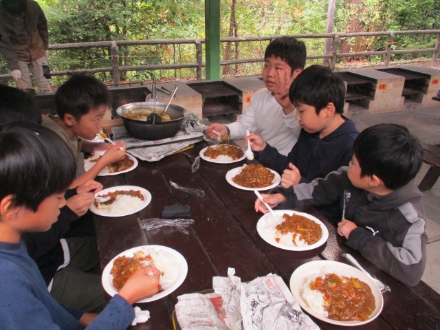 初日のメイン活動を「山登り」にするか「カレー作り」にするか、参加者である5年生が話し合って「カレー作り」に決めました。お家でカレー作りを予習してきてくれた子が多く、とてもスムーズに作ることができました。そしてとてもおいしいカレーが出来上がりました。