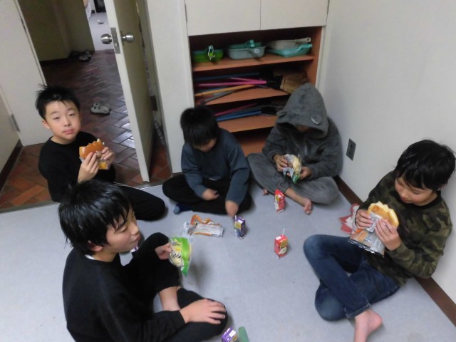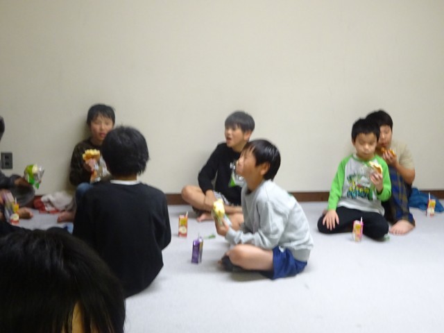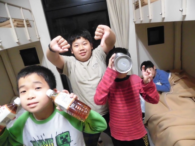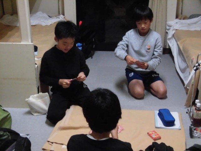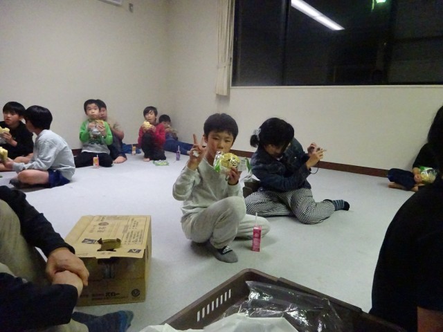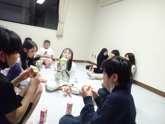 キャンプファイヤーが終わり、夜食をいただきました。それぞれ部屋へ戻り就寝準備です。
