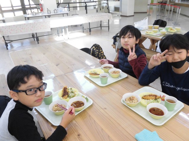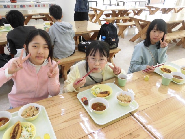 おひるごはんは炊き込みご飯と豚汁でした。とってもおいしくてご飯も豚汁も完食でした。