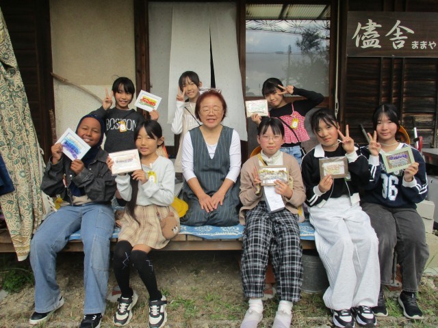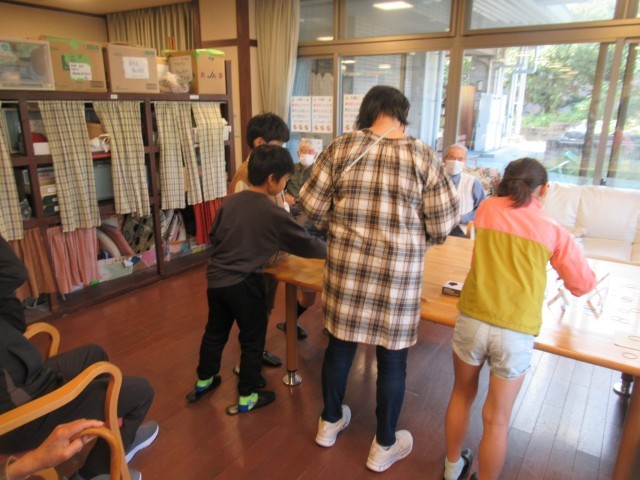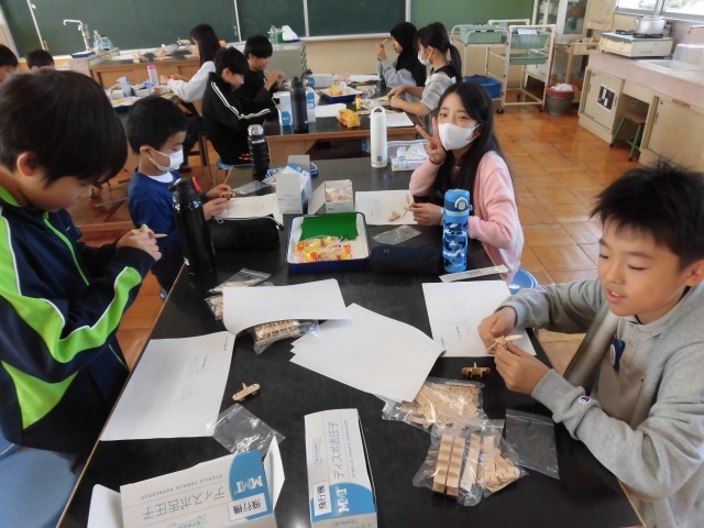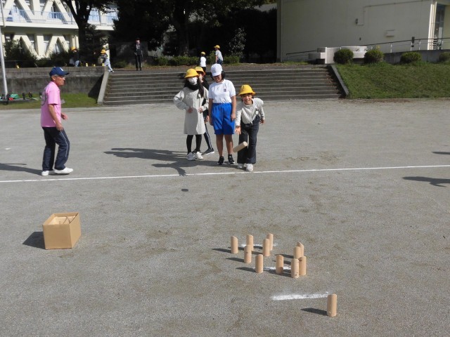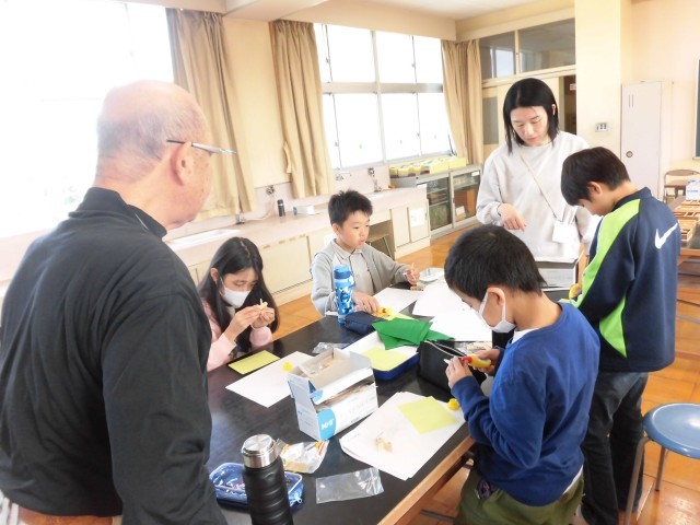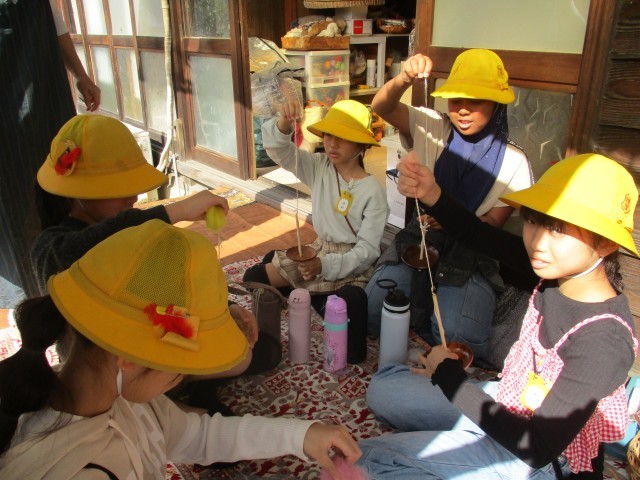 10月27日月曜日 4年生以上の一日体験講座がありました。あさひがおかケアハウスでのボランティア体験、廃材利用の「舌圧子工作」、バドミントン、モルック、学校近くの「儘や」での「ミニ織物体験」、自分で選んで体験しました。
