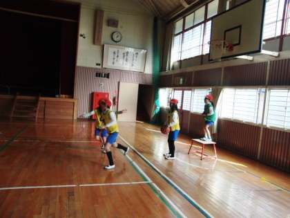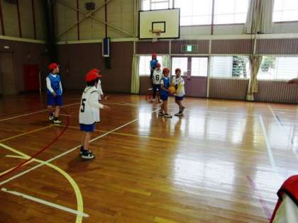 今日はポートボールの練習風景です。少しずつ、ゲーム形式ですすめています。上手にパスを回すには、一人一人がどんなふうに動いたらいいのか、みんなで考えてみましょう!
