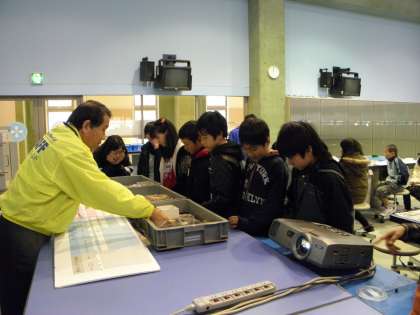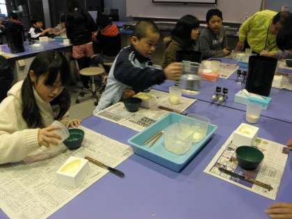 Aコースは、午前中にレプリカ作りを行い、午後は、サイエンスショーを見ました。実際のアンモナイトや三葉虫の化石を見たり、作ったりする経験はなかなかできないので、子どもたちも興味津津でした。サイエンスショーは、ちょうど授業の復習でしたね。途中で、ちょっと驚くような場面も・・・。