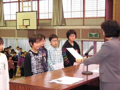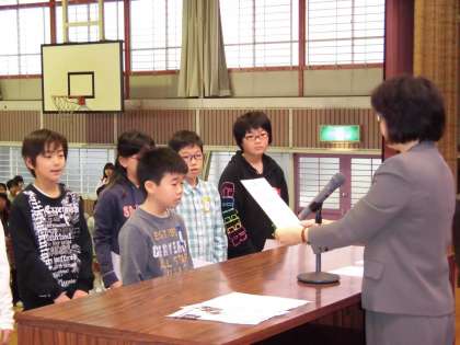 4月20日(月),朝会がありました。学級委員の認証の後,校長先生の話がありました。その様子を写真で紹介します。