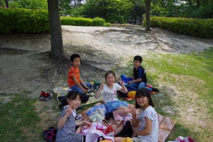 お天気にも恵まれ、4年生桃花台中央公園へ出かけました。いつも通っている通学路を通過して、てくてく小牧市まで歩きました。幸い今日は、どこの小学校も来ておらず、神屋小学校の貸しきり状態でした!着いたらお弁当を広げ、みんなでわいわい食べました!