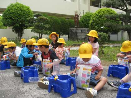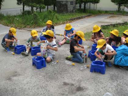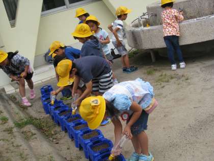 明日の種まきに備えて、植木鉢に土をいれ、お水をたっぷりあげました。