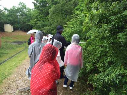 ネイチャーガイドの人と、雨の日の自然の様子について学習してます。